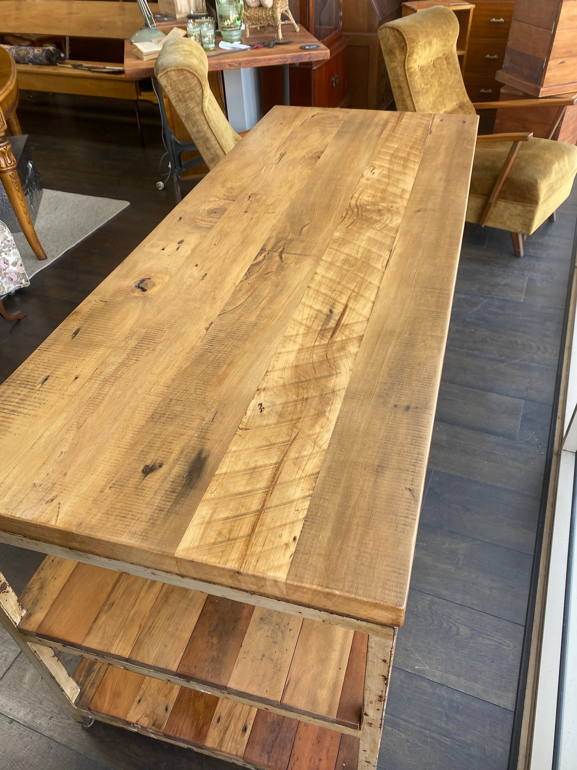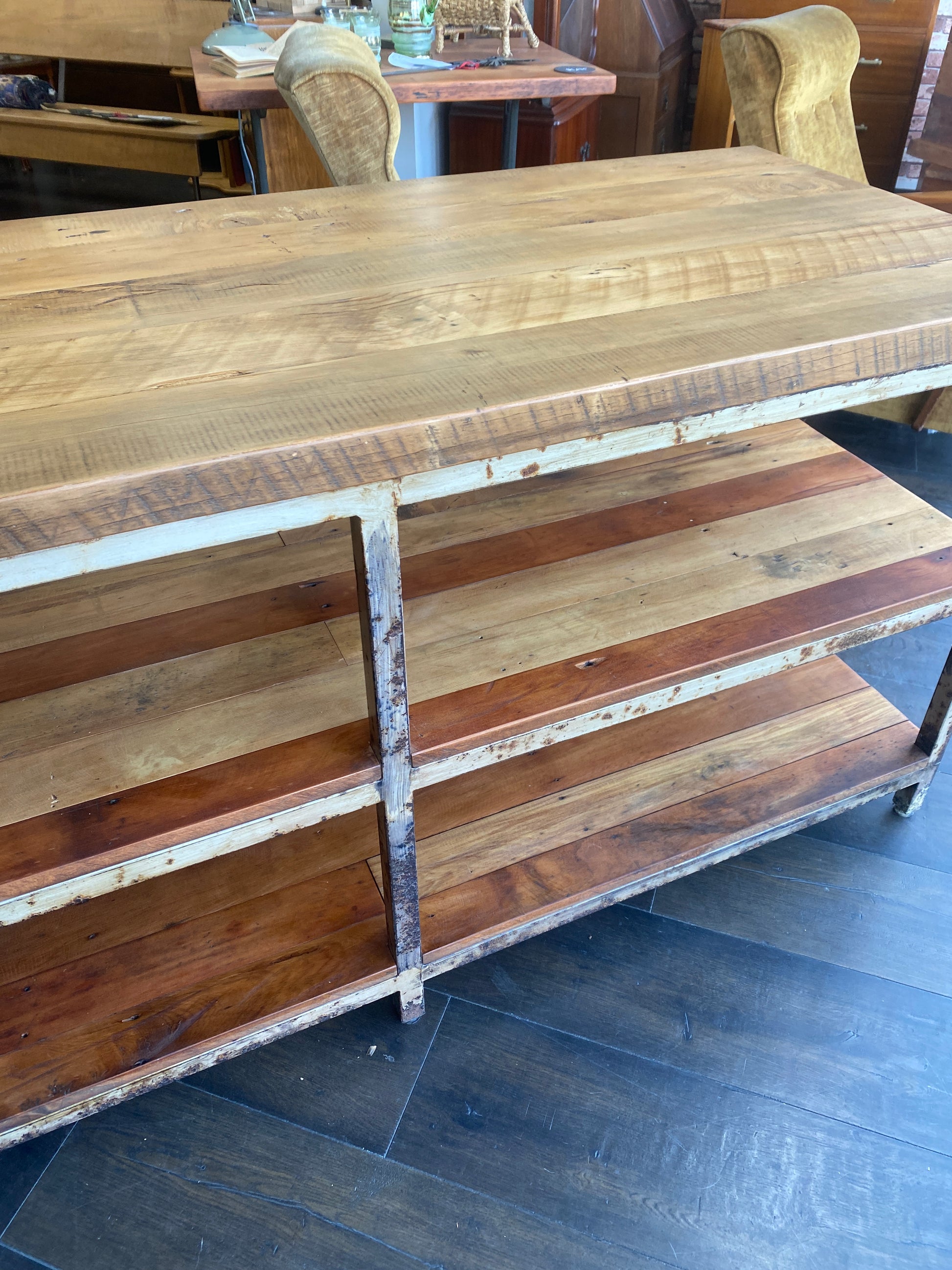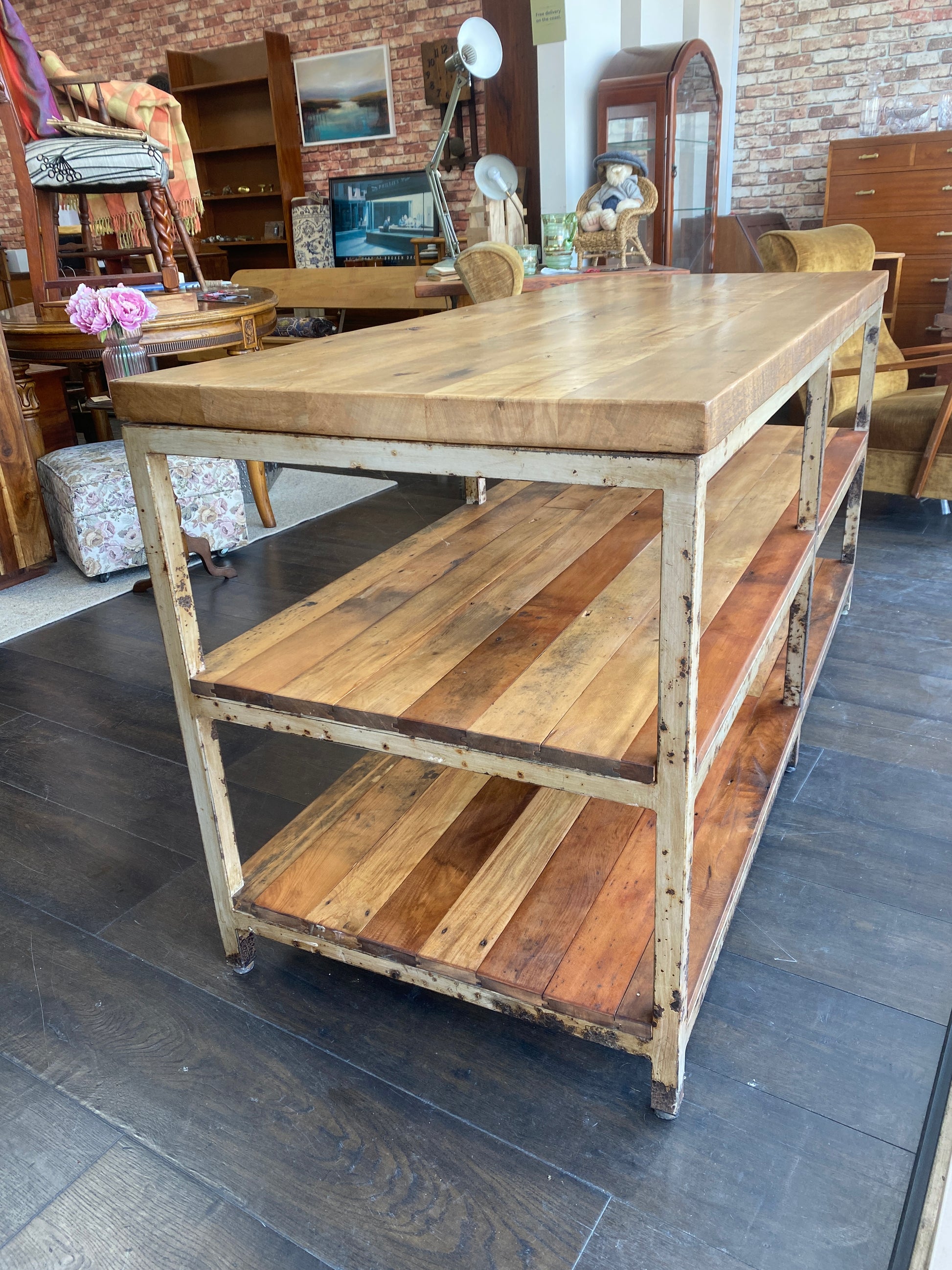 An extraordinary hand made Antique Rimu & Steel Industrial Kitchen Island by Industrial Design NZ. These reclaimed timbers have come out of an old North Shore villa and have been transformed into this practical, solid and stunning piece.
