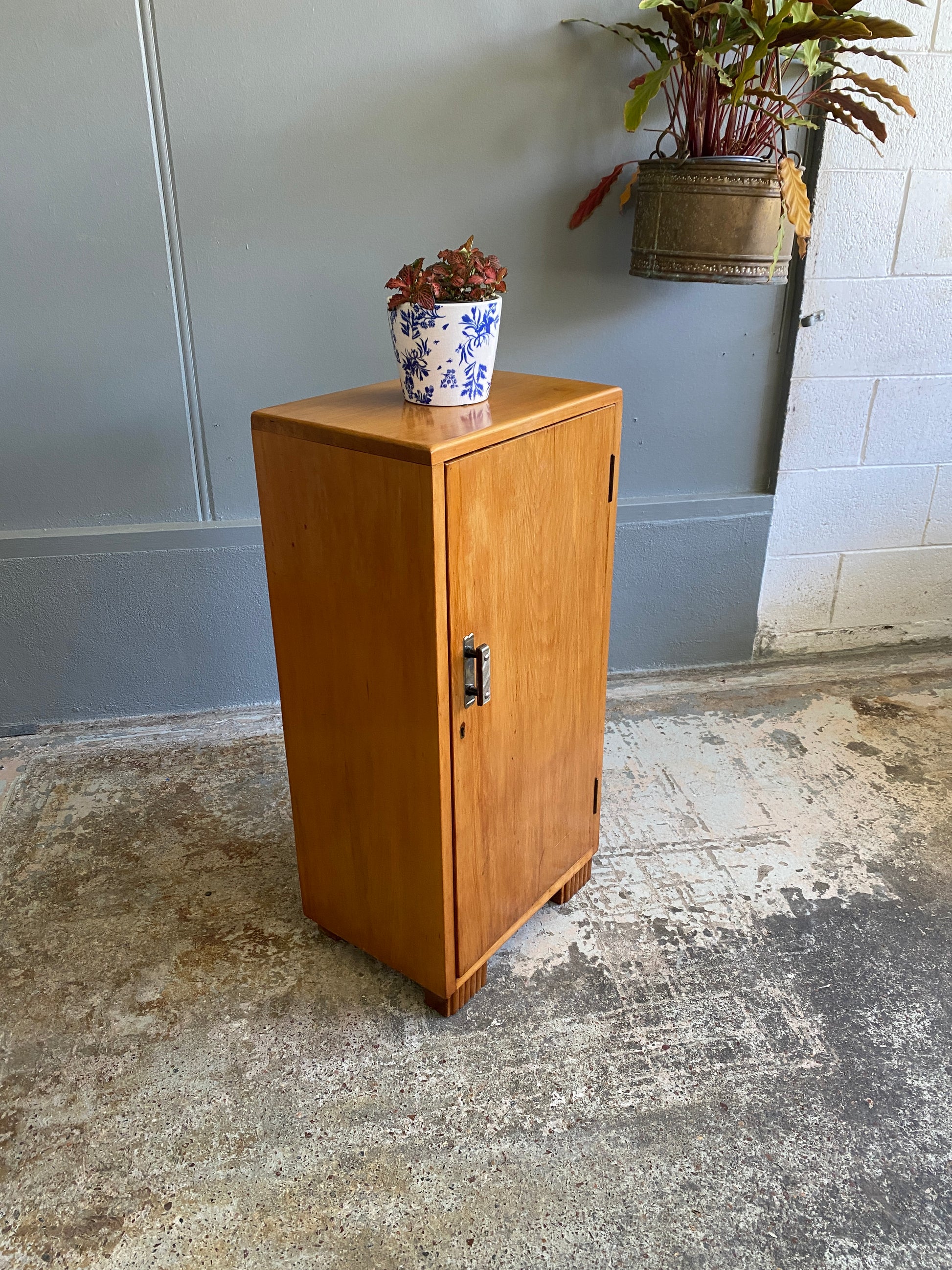 A pretty, but simple Art Deco Rimu Tall Night Stand in lovely original condition with original hand. Idea as a small storage unit or for art materials. Minor wear due to age.