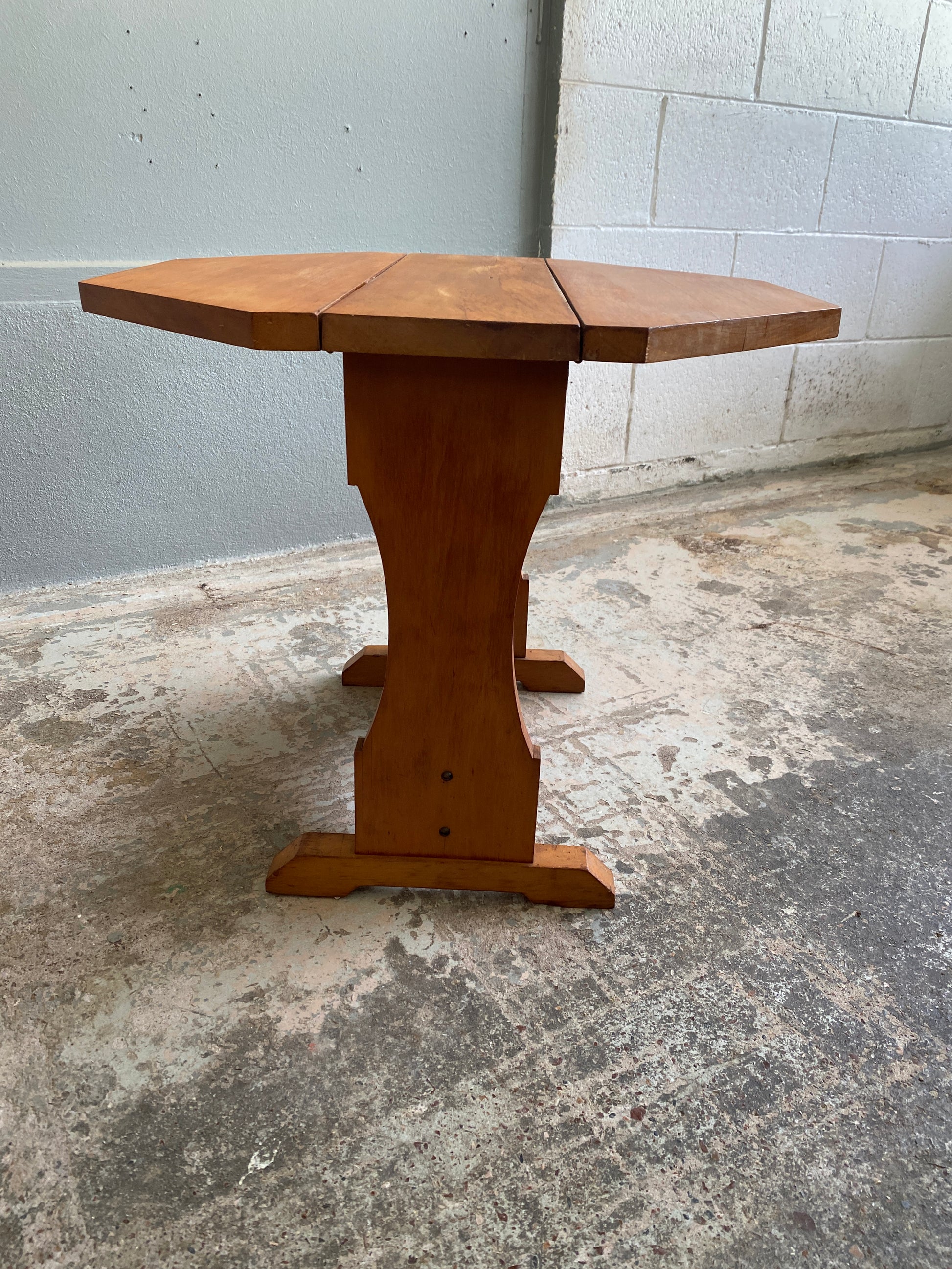 The cutest Arts & Crafts Rimu Drop Leaf End Occasional Table you have ever seen. So much design and practicality in one small piece. Ideal as a fold away table for your morning coffee or even an evening Gin. Lovely condition. Unique style.