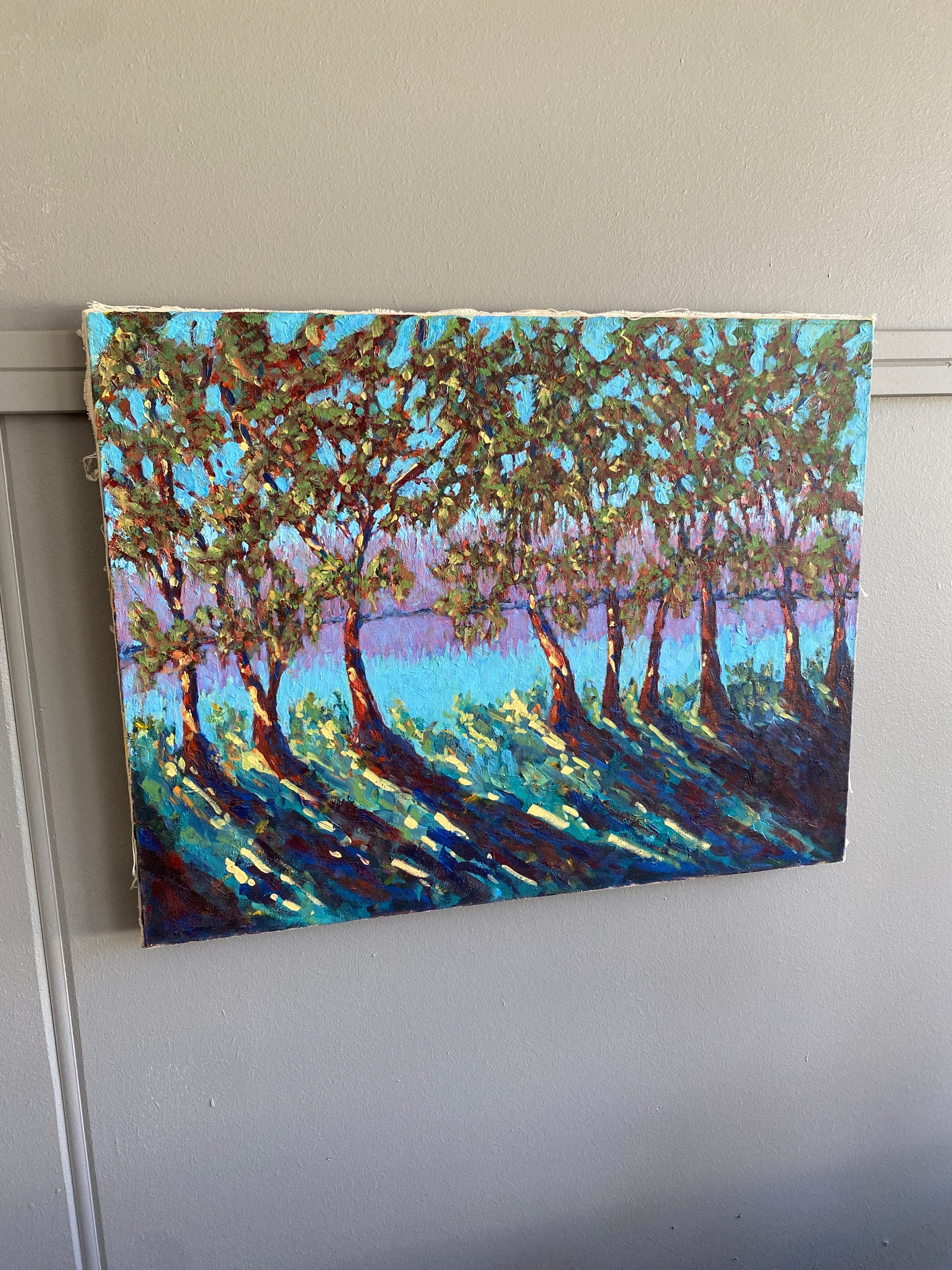 - Untitled by Keith Mallaby - A captivating artwork featuring windswept trees in vibrant blues and greens