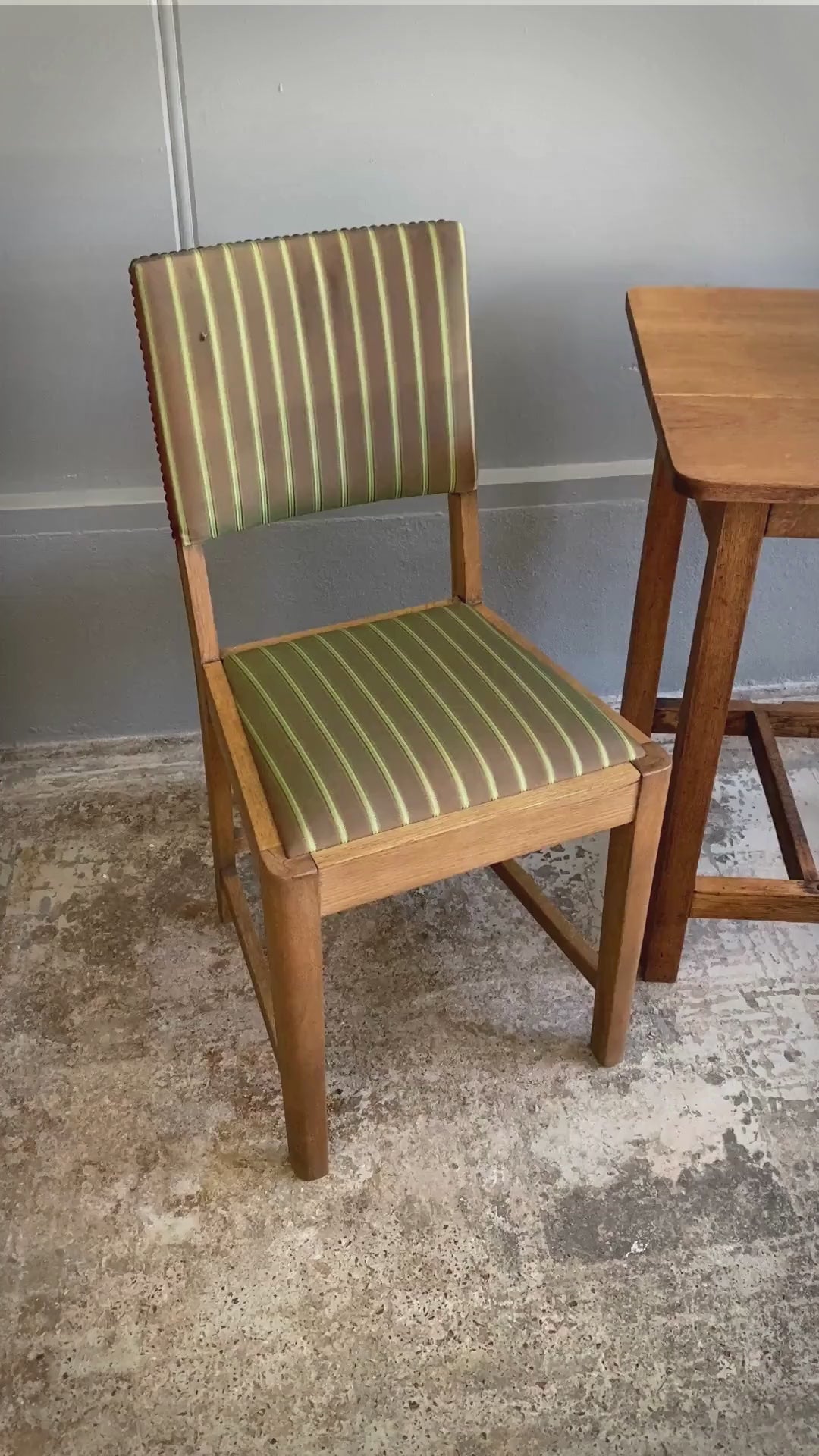 - Vintage Solid Oak Occasional Chair - A charming chair with distinctive green striped upholstery
