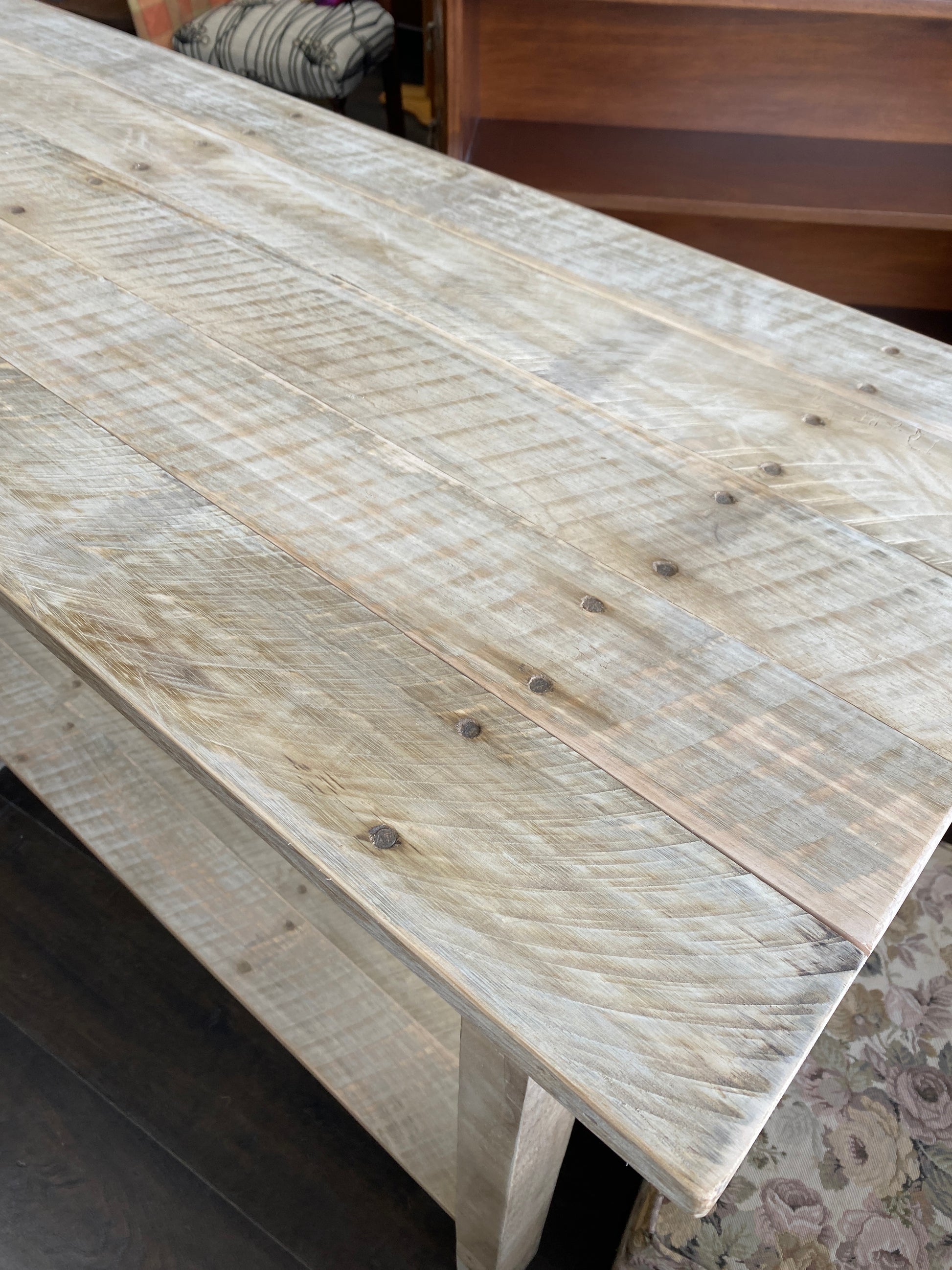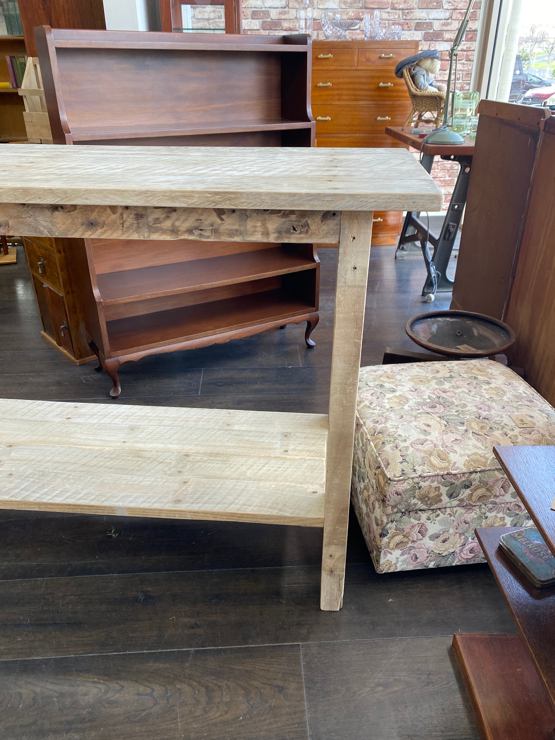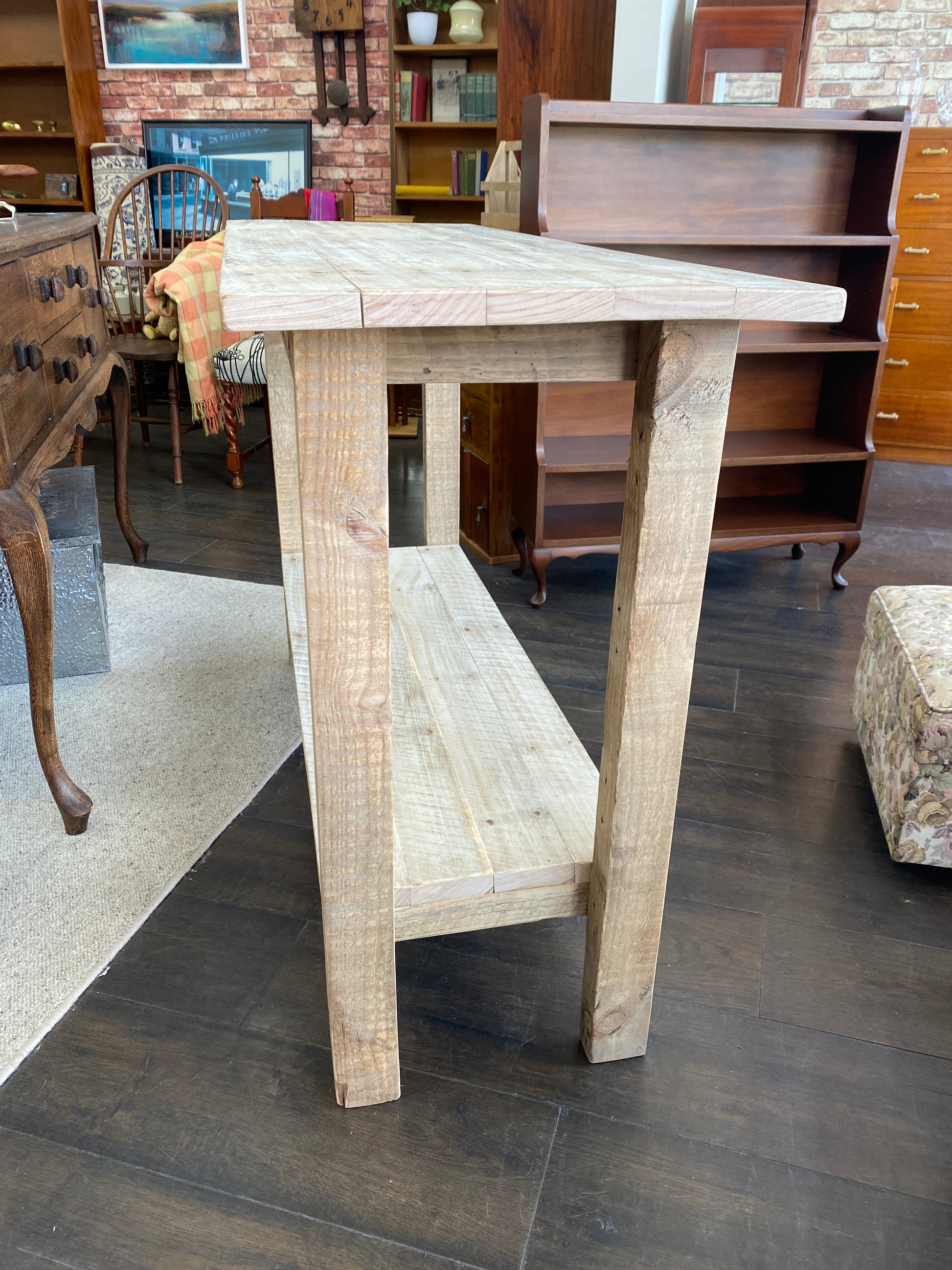 A stunning handmade Reclaimed Australian Gum Bar Leaner/Utility Table by Industrial Design NZ. This rough sawn timber is a light/blond smooth finish with a solid design. Use it for a hallway, bar leaner or in a kitchen. There is no need for new when vintage timber like this is so good.