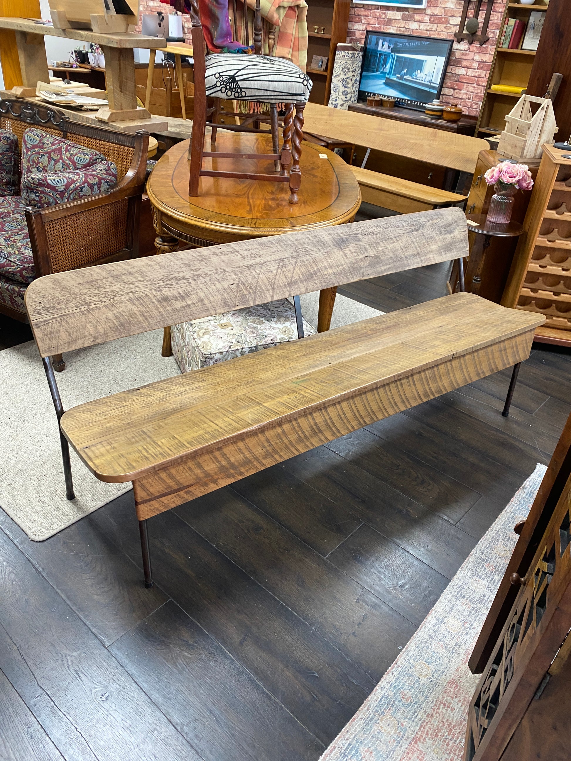 A stunning piece from Industrial Designs NZ - taking utilitarian pieces and maying some new and beautiful. This Reclaimed Rimu & Steel Bench has been hand shaped to be both aesthetically pleasing and comfortable. The Rimu is recovered and shaped and the steel frame has ben waxed and strengthened with spot brass welds. Recovered from a Riverhead based building. The planks are hand sculpted for comfort.