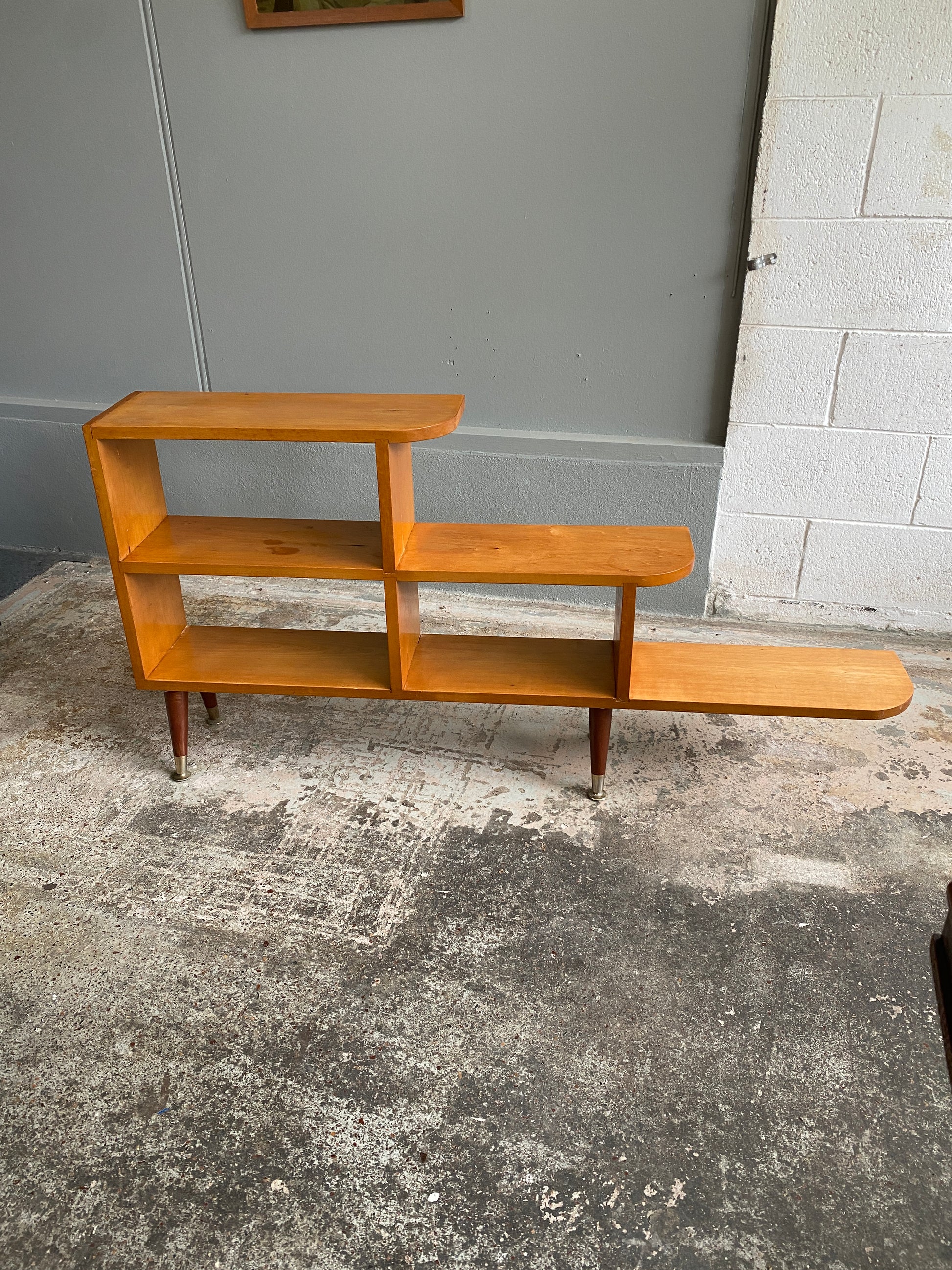 1320mm l, second tier 940mm l and third tier 560mm l. 195mm d x 660mm h. Shelf height 205mm.
