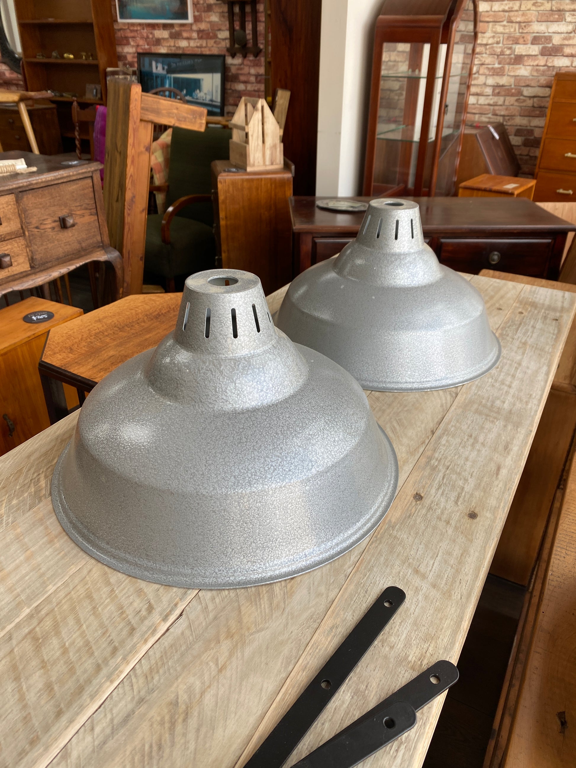 Vintage Aluminium Industrial Light Shades Pair