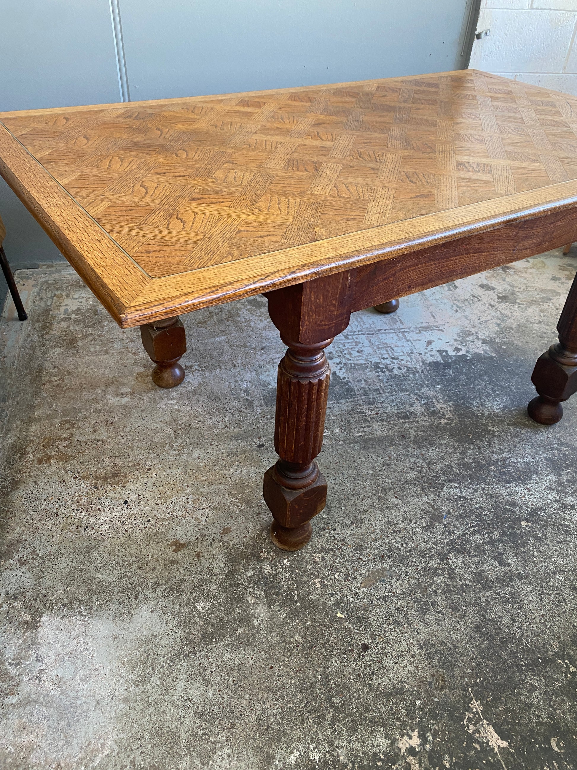 Vintage Oak Dining Table with Parquet-style Oak Top