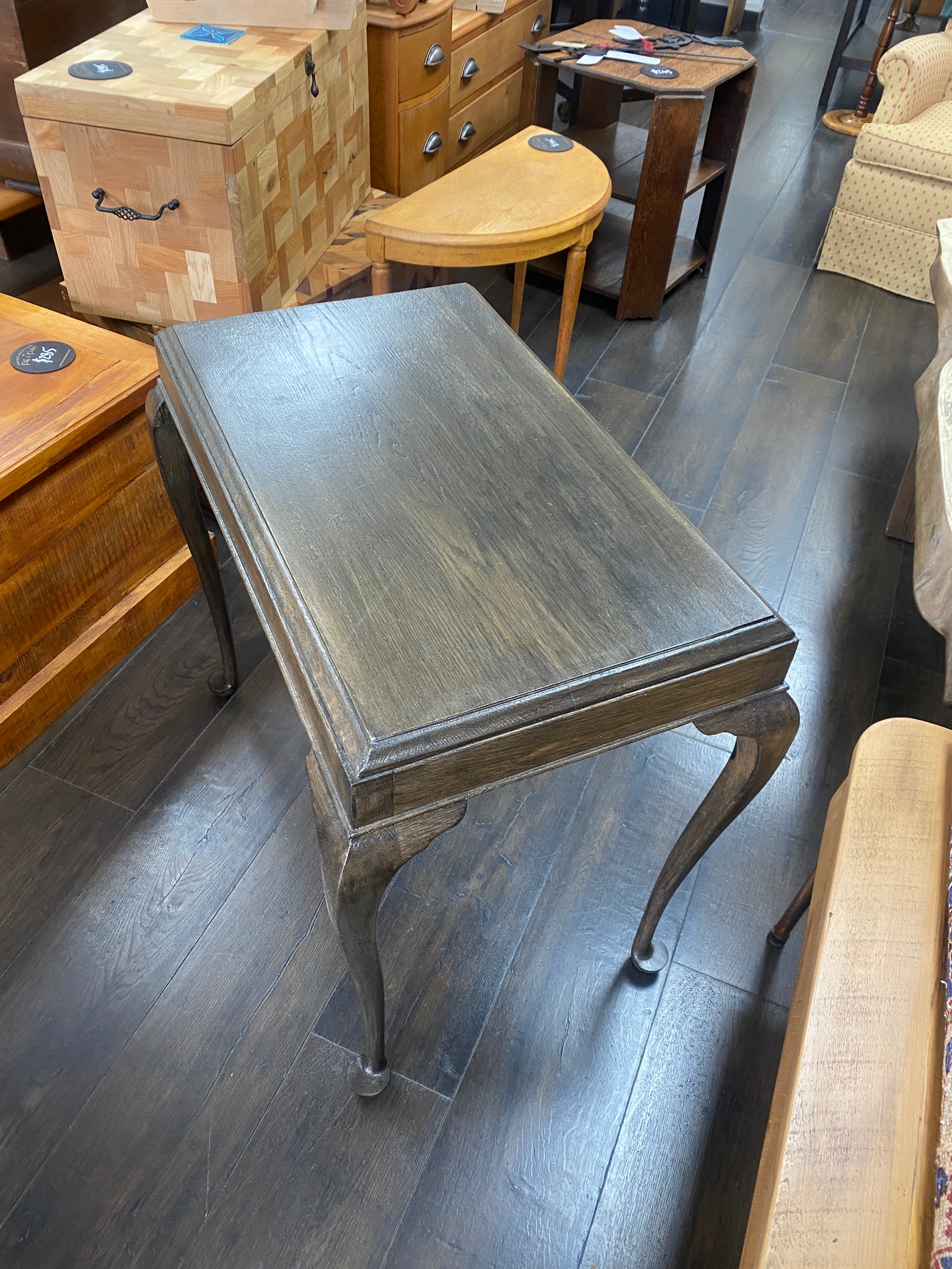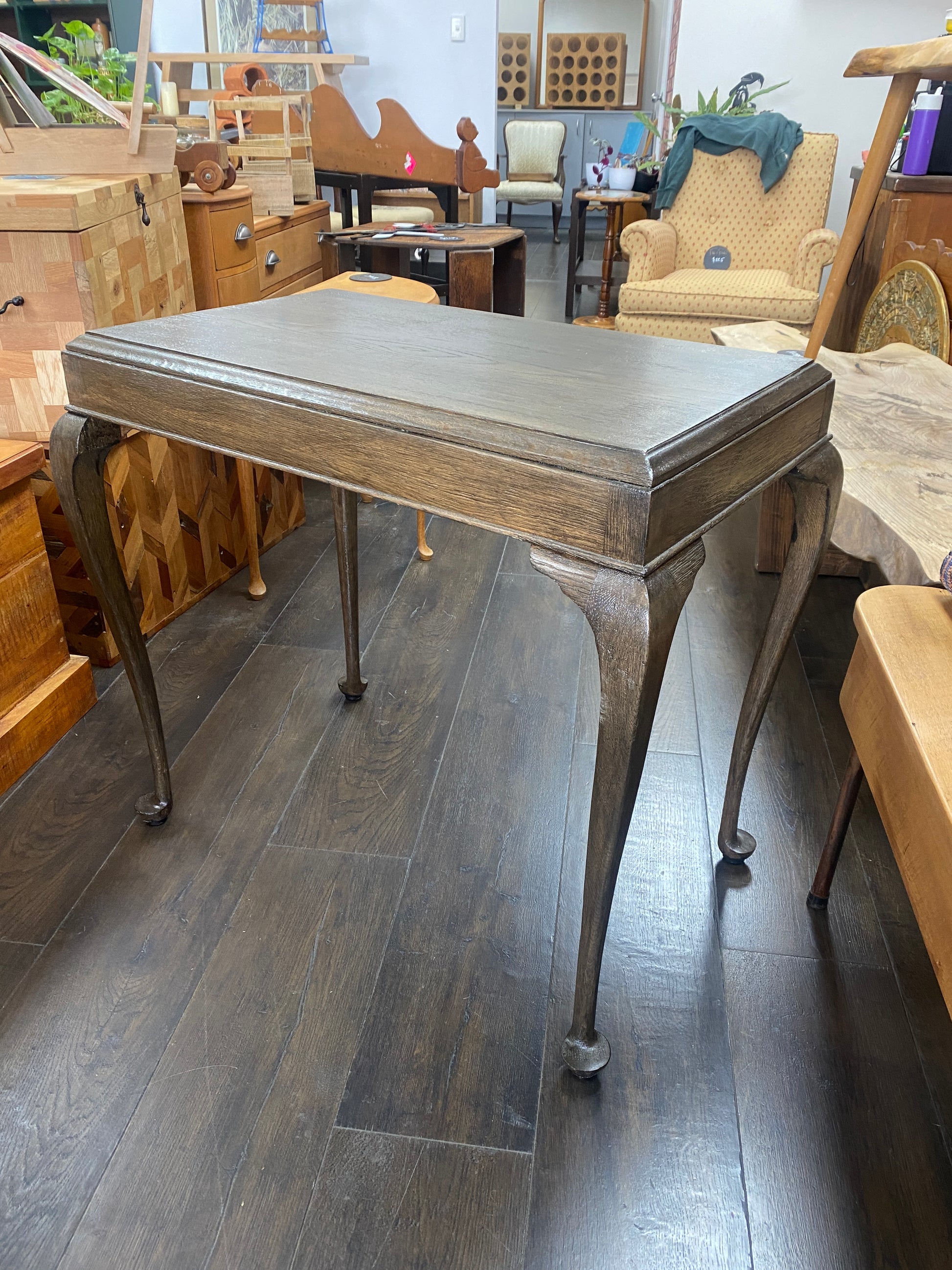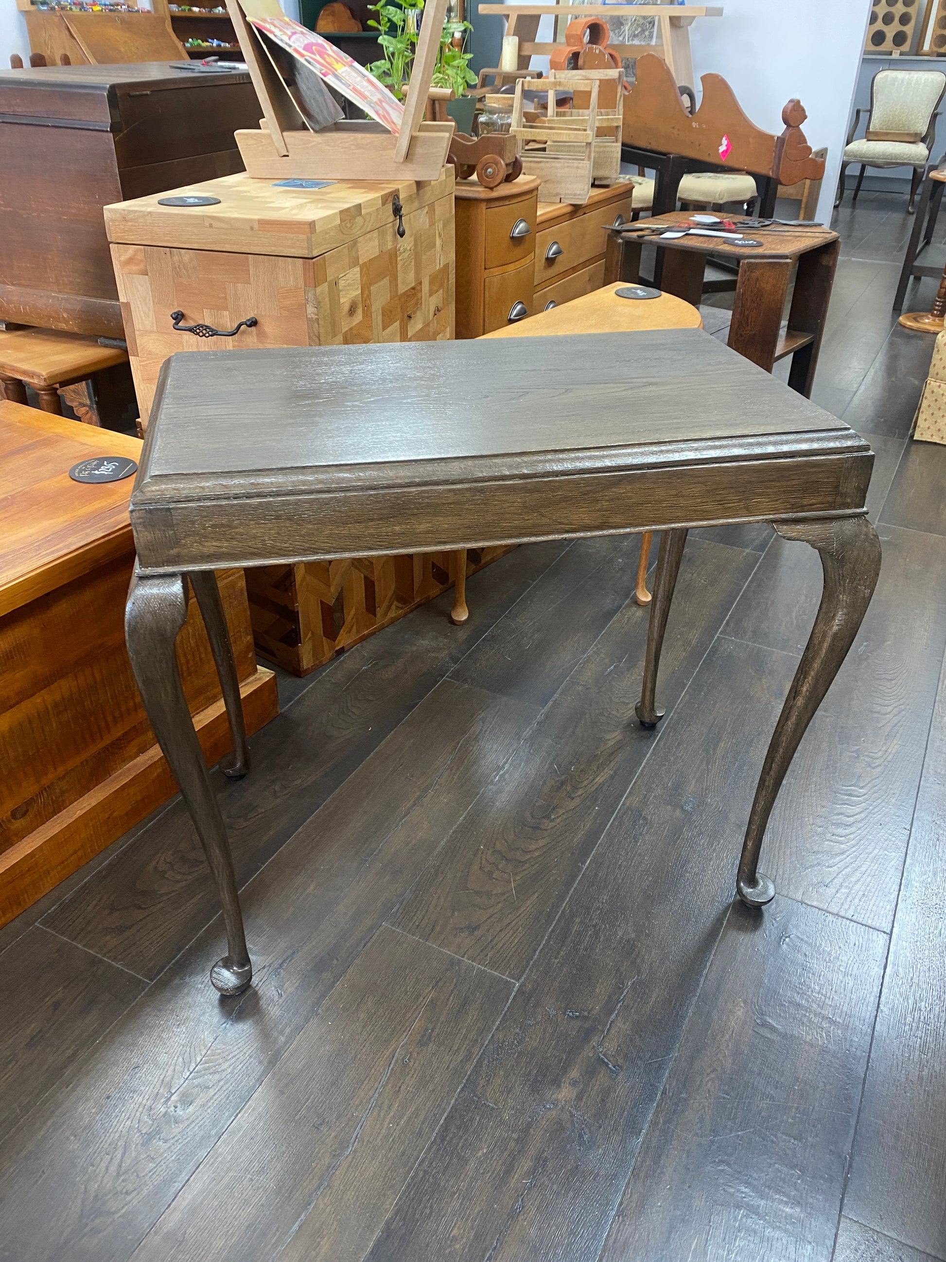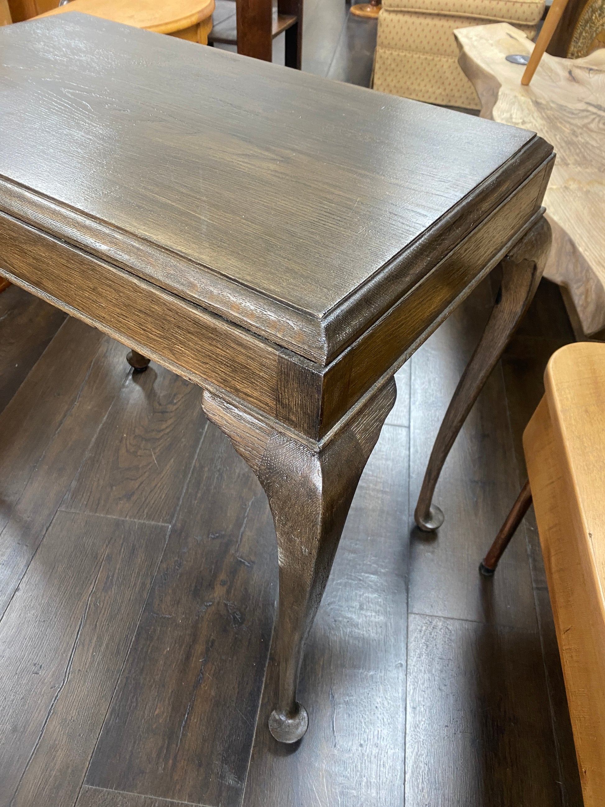 An elegant renovated Vintage Queen Anne Style Oak Hall Table in lovely condition. Being solid oak it is a piece that stands the test of time. It has been finished with a lacquer that has a warm, forest green finish. Minimal wear, one slight small discolouration on the top the size of a 50c piece. Not prominent.