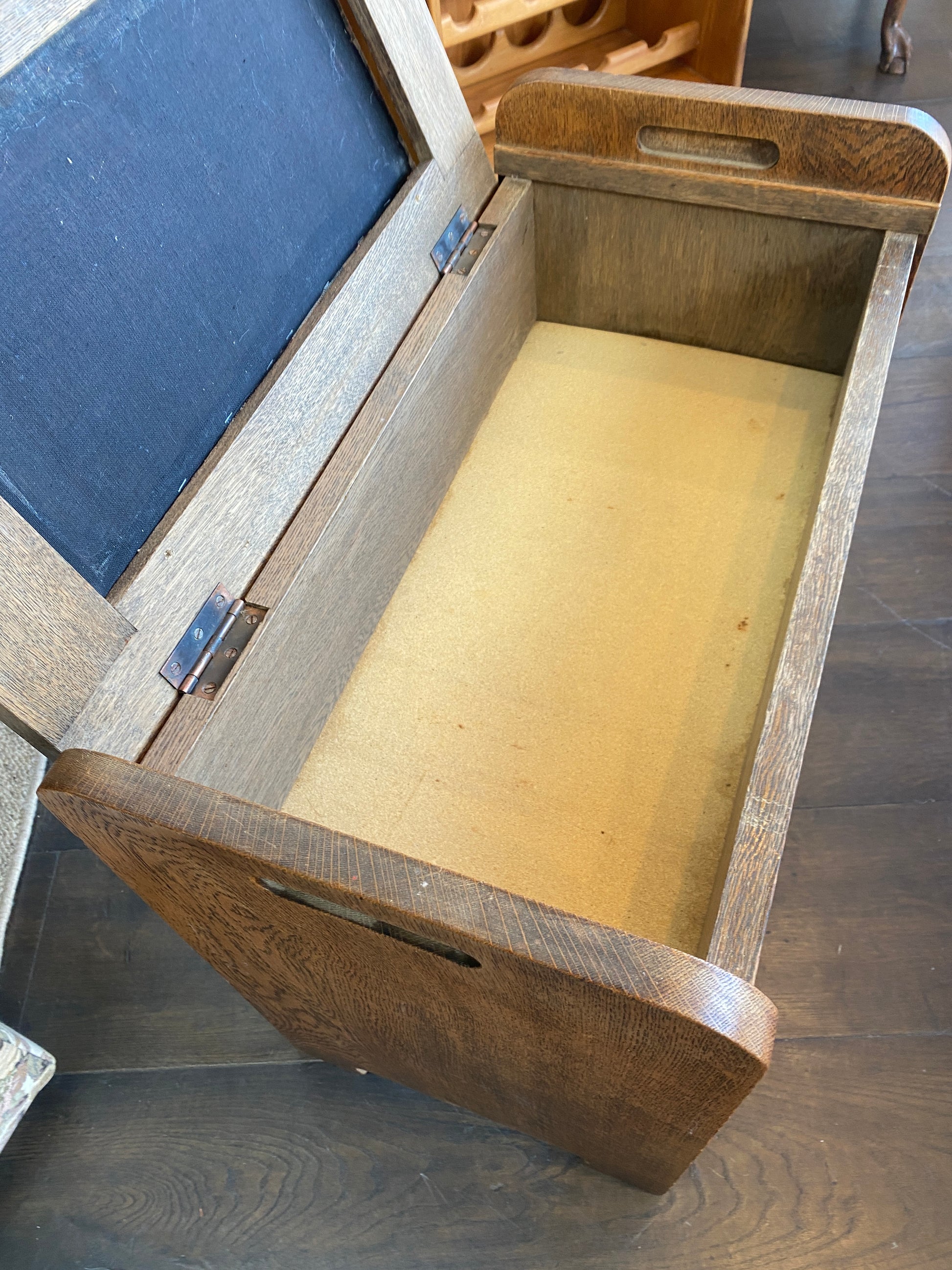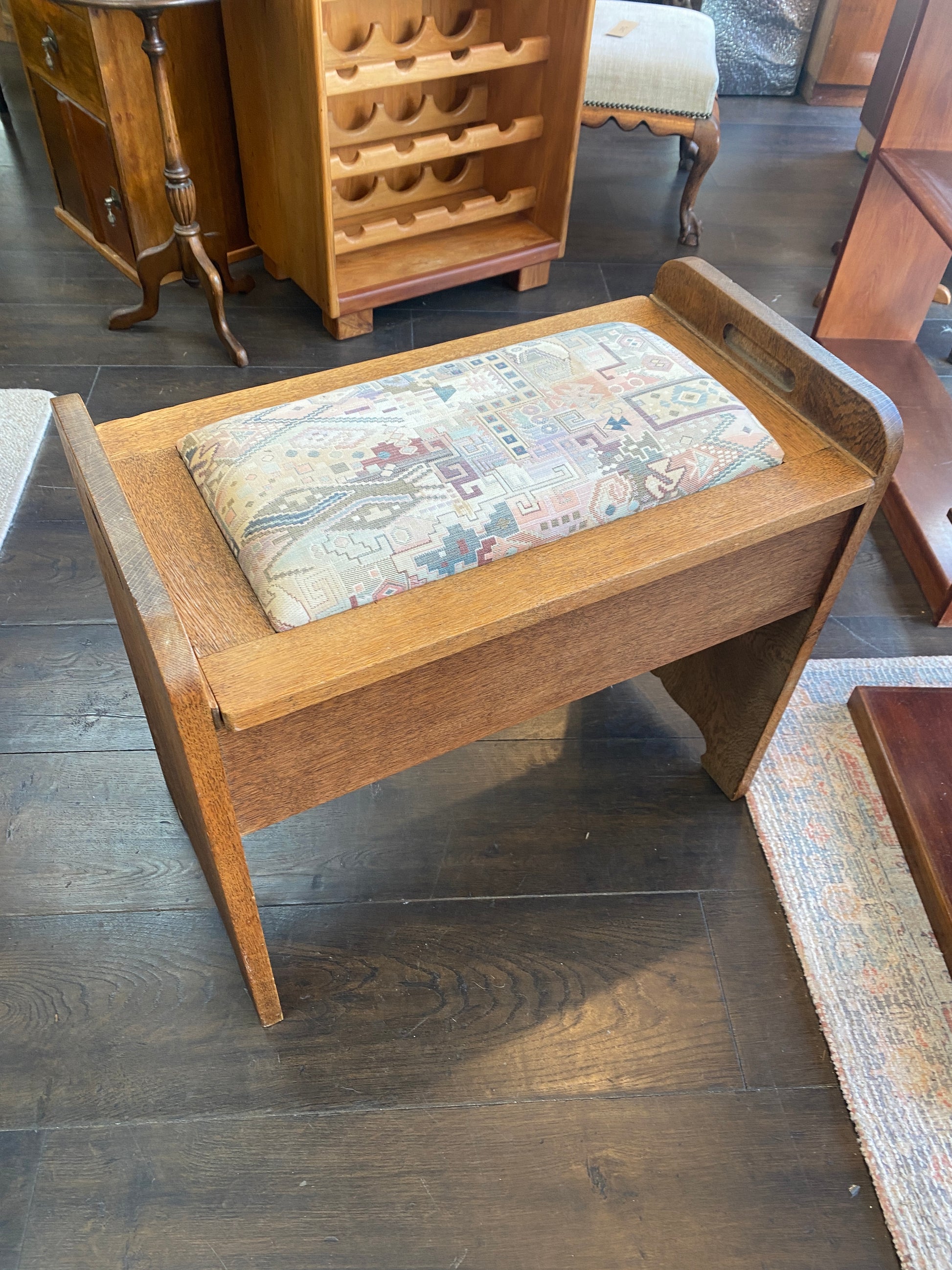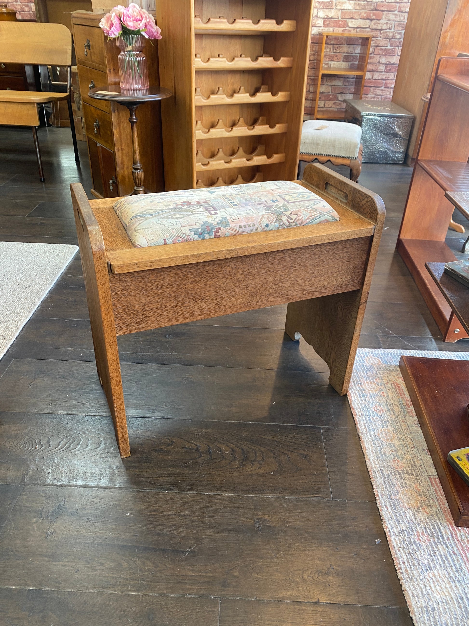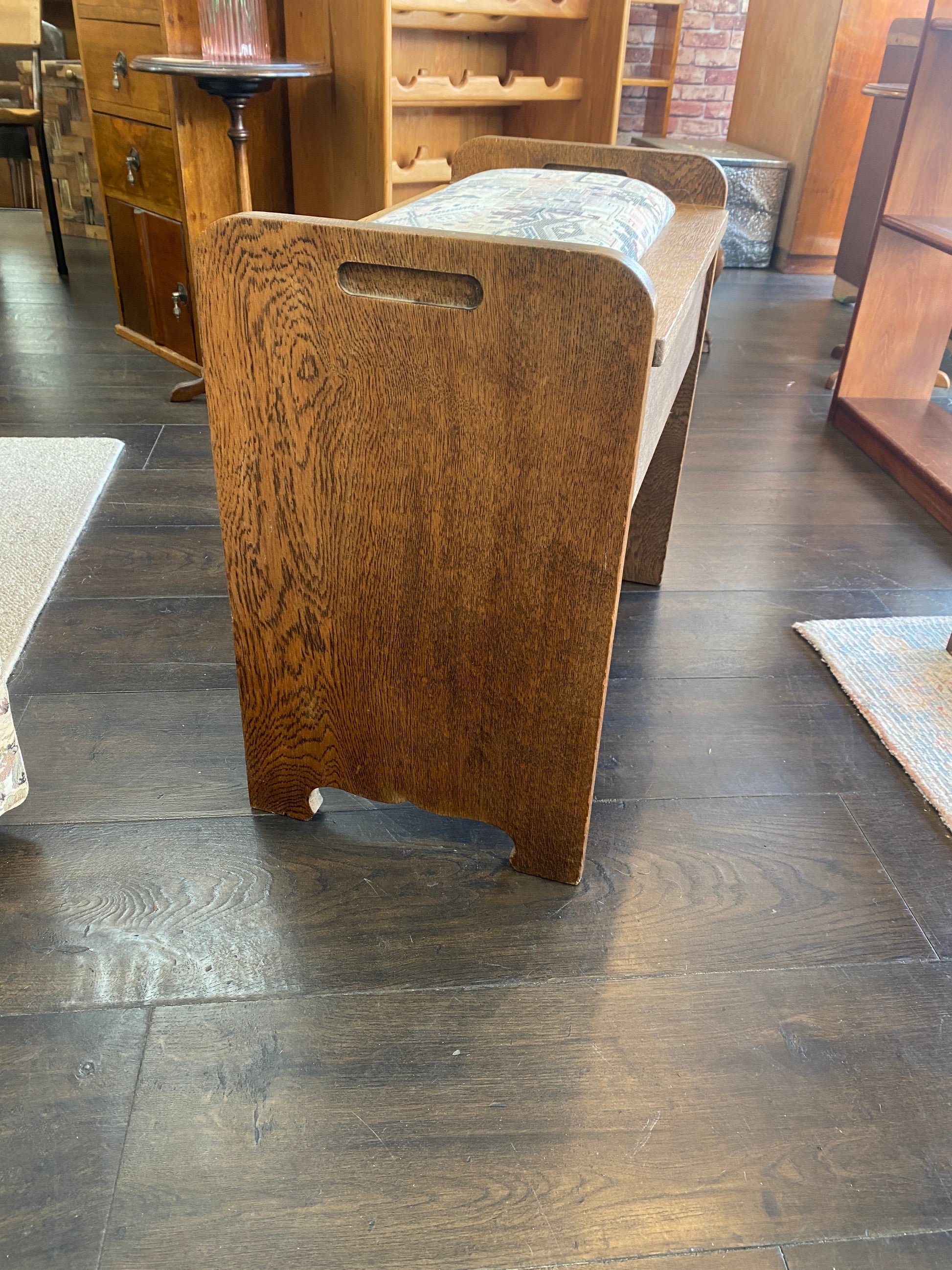 A lovely Vintage Solid Light Oak Piano Stool in great condition. A solid design and very little sign of age. This piece is an ideal addition to any hallway. The top fabric pad can be easily replaced and plenty of storage in the seat.
